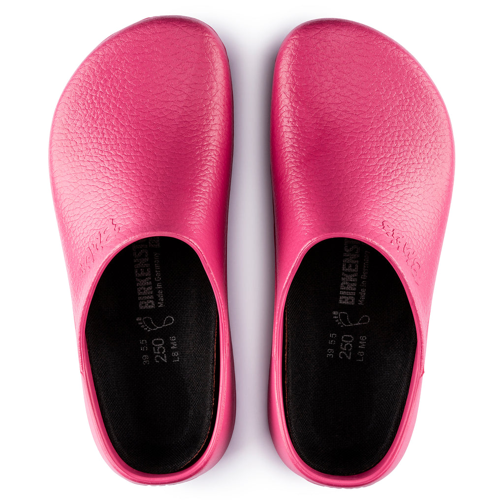 A Professional Collection favorite, the Super Birki clog puts comfort to work in just your color. Fluid-resistant PU and added traction makes it a fit for healthcare, hospitality and wherever you need extra help getting the job done. Wash and disinfect the clog at up to 140°F and its removeable footbed at up to 86°F. The style is grounded in trusted anatomic support—feel the footbed and you'll feel the difference after long hours on your feet.