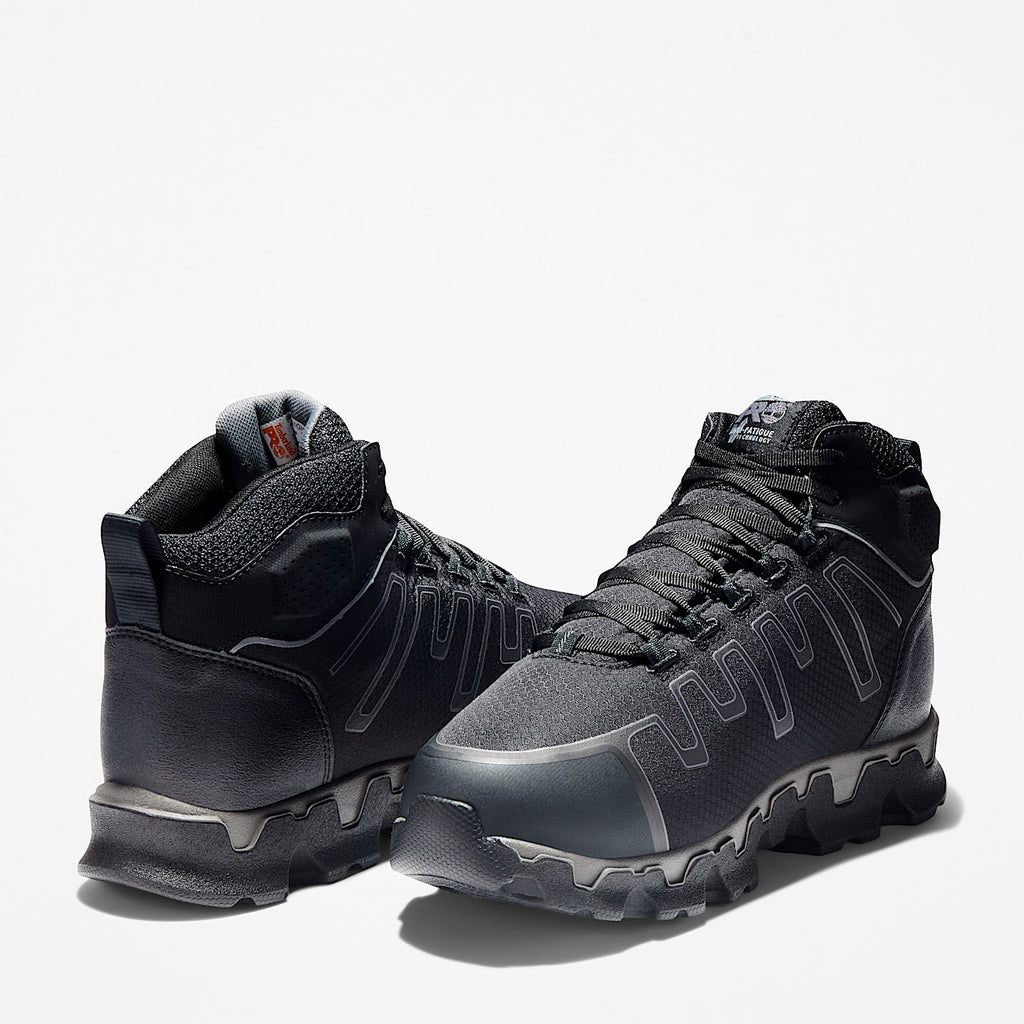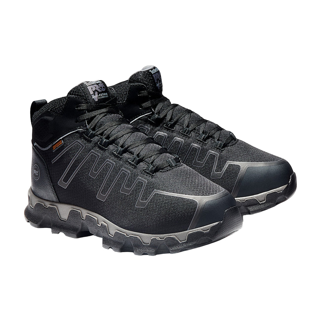 Our Timberland PRO® Powertrain Sport athletic work boots offer lightweight performance, but they're all business when it comes to protection. Not only are their premium ripstop nylon uppers tough enough to handle working on your feet all day, they feature alloy safety toes, internal metatarsal guards, electrical hazard protection, and Anti-Fatigue Technology for all-day shock absorption and energy return. Their breathable, moisture-wicking linings are made of ReBOTL™ fabric containing at least 50% recycled plastic. Plus, their lightweight outsoles are made of heat-, oil-, slip-, and abrasion-resistant, non-marking polyurethane for enhanced traction.