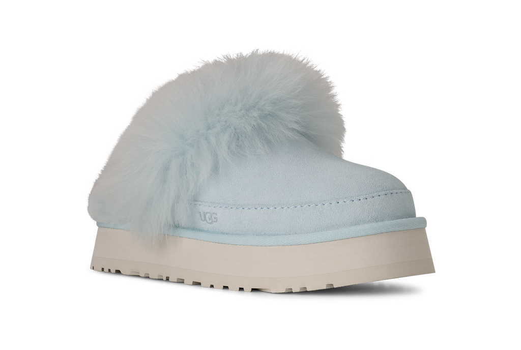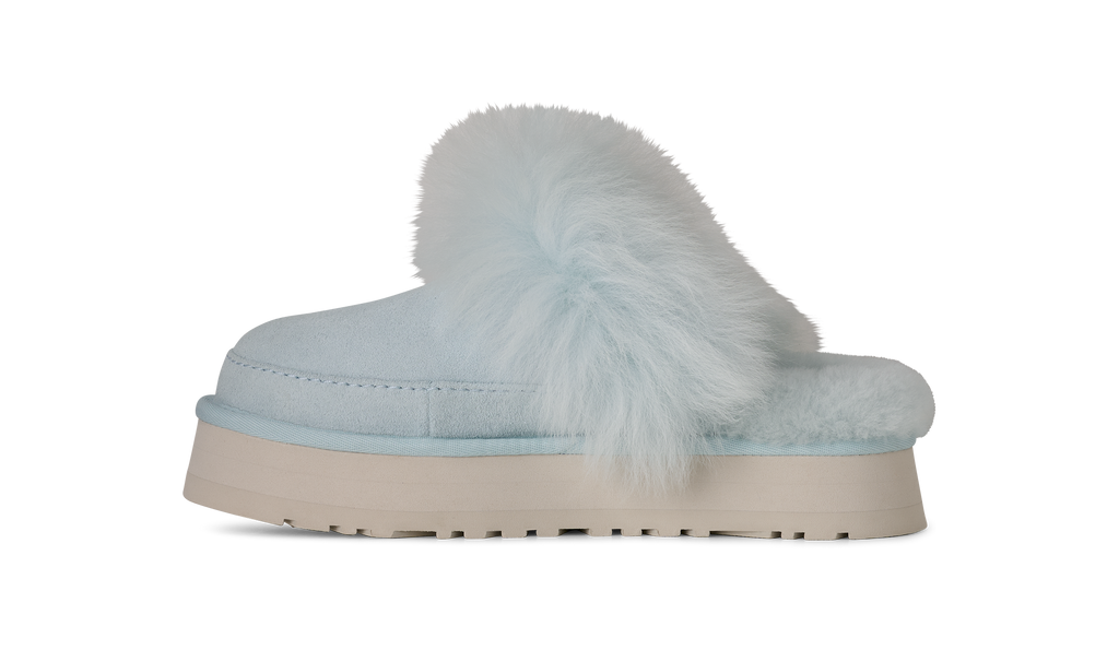When the weather outside is frightful, our Disquette Chalet is so delightful. This decadent slipper delivers surrounding warmth, from the sheepskin insole and UGGplush™ lining to the fluffy sheepskin collar. Designed to be worn both indoors and out, it's set upon a 1" platform made from lightweight (and super cushy) sugarcane EVA.