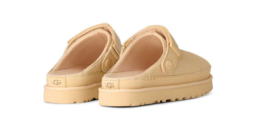 Crafted from velvety suede, this versatile platform clog offers a wear-with-everything style. If you are reaching for a clog, you'll want comfort, and the Goldenstar Clog delivers! The heel strap features a swivel design for a 2-in-1 wearing option -- wear it as a heel strap or stacked on top for an easy on/off, open back option. An ultra-lightweight outsole provides all-day cushion and support.