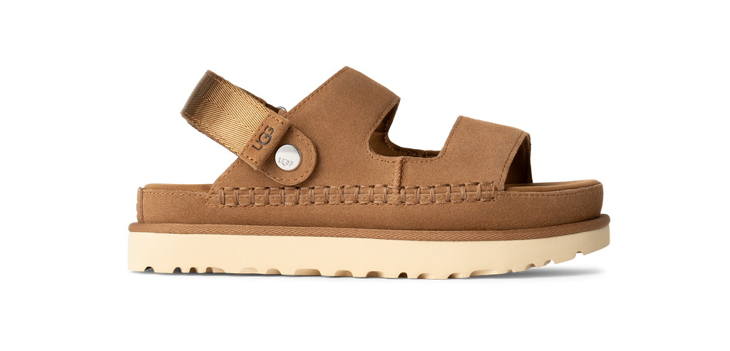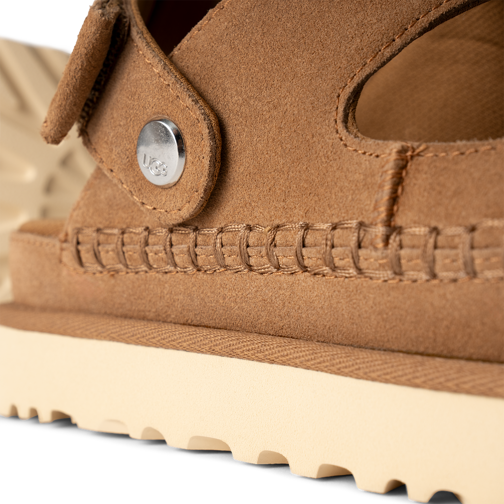 Ready, set, glide. Our Goldenstar Glide brings convertible comfort to all of your sunny-day excursions. It's designed with an adjustable heel strap that can flip to the front for slide-like access when you're on the go. The contoured footbed is lined with soft, recycled material infused with an anti-odor treatment to keep you feeling fresh. From the rich suede upper to the renewable sugarcane EVA sole, the Goldenstar Glide is headed straight for your 'favorites' line-up.